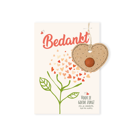 Hanger Hart met bloembommetje op kaart "Dag van de Zorg"
