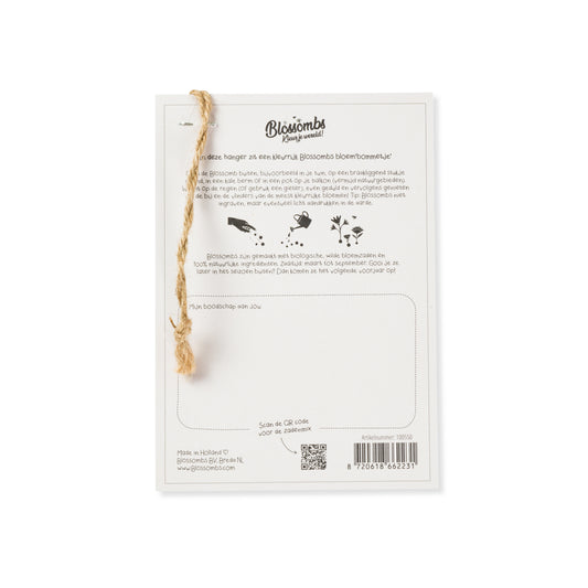 Met de vrolijk gekleurde bloembommetjes van Blossombs creëer je een ware bloemenzee en voedselparadijs voor bijen en vlinders. Gooi de Blossombs overal waar je maar bloemen wilt; in de tuin, op het balkon of een braakliggend stukje grond in en rondom de stedelijke gebieden (vermijd natuurgebieden). Wacht op de regen (of gebruik een gieter) en na een paar weken genieten jij, de bij en de vlinders van de mooiste, biologische bloemen!