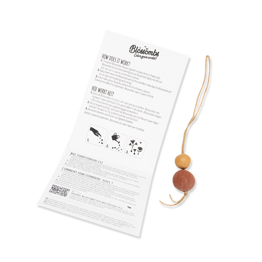 De bloembommetjes worden met liefde in Nederland gemaakt. De Blossombs bevatten biologische, wilde bloemzaden en zijn ze samengesteld met natuurlijke klei, voedingsstoffen en kleurpigmenten.