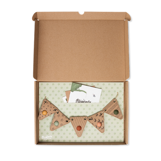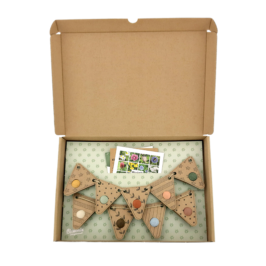 Heb jij iets te vieren? Of wil je iemand verrassen met leuke versiering? Dan is de Vlaggenlijn met zaadbommetjes het perfecte product! Met deze feestelijke slinger zorg je voor een glimlach bij de ontvanger (of bij jezelf) en daarna ook voor voedsel voor de bijen en vlinders.