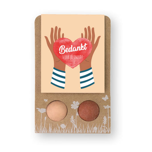 Weggeefcadeautje met 2 zaadbommetjes 'Bedankt voor je inzet'