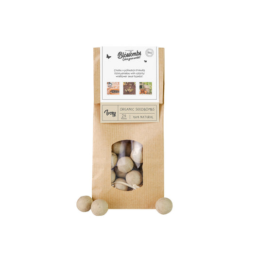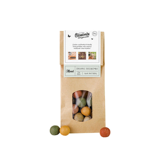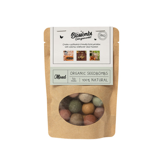 Met de vrolijk gekleurde bloembommetjes van Blossombs creëer je een ware bloemenzee en voedselparadijs voor bijen en vlinders. Gooi de Blossombs overal waar je maar bloemen wilt; in de tuin, op het balkon of een braakliggend stukje grond in en rondom de stedelijke gebieden (vermijd natuurgebieden). Wacht op de regen (of gebruik een gieter) en na een paar weken genieten jij, de bij en de vlinders van de mooiste, biologische bloemen!